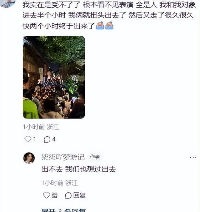 这位网友还爆料,在场很多群众都在喊退票,因为游客太多,观众的体验感并不好。