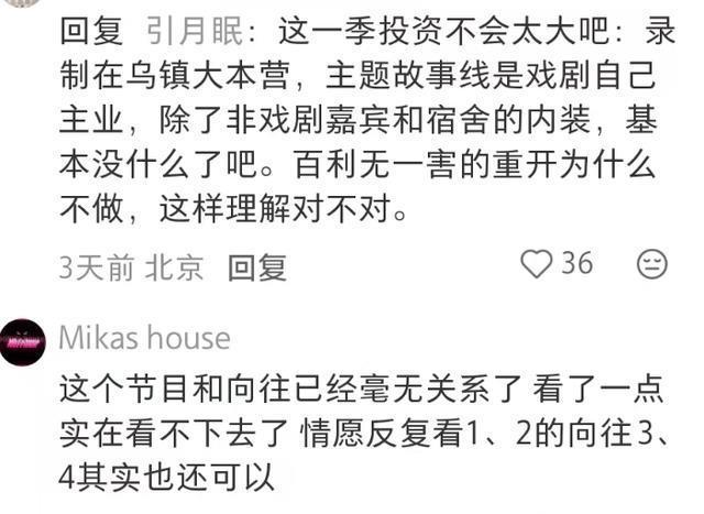 到现在还有网友在争论,这一季的《向往》到底是不是有说得这么难看,喜欢的和不喜欢的人各自都有理由。