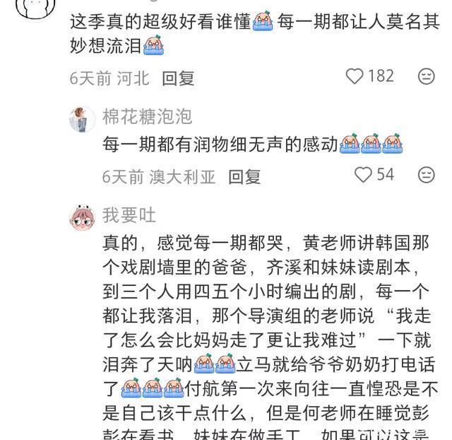 还有不少网友站出来分析这一季的泪点,似乎也不是纯粹的水时长、混节目通告费,相反的是很多泪点都能戳中人。